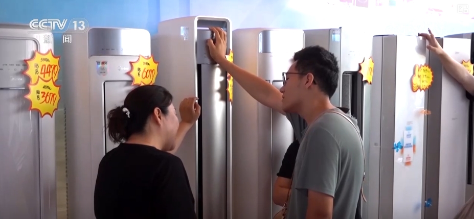 店主介紹,當(dāng)前消費(fèi)者“以舊換新”需求旺盛。6月份以來,店內(nèi)銷售量環(huán)比增長(zhǎng)了33%,空調(diào)、冰箱等清涼家電成為消費(fèi)主力。