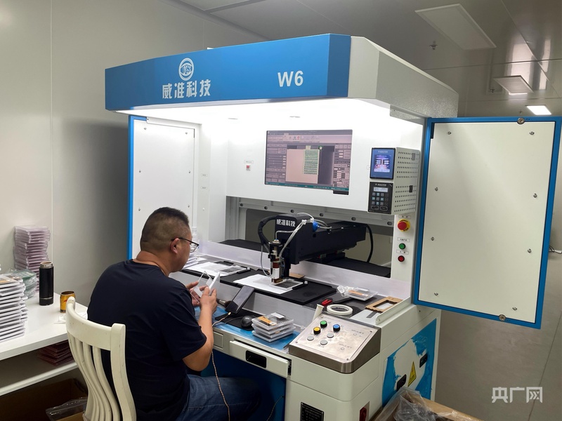 企業(yè)車間內(nèi)的自動(dòng)點(diǎn)膠機(jī)(央廣網(wǎng)記者 唐磊 攝)