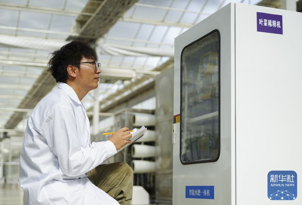 ↑ 這是6月25日在新疆阿克蘇地區(qū)拍攝的庫(kù)車市甬庫(kù)同心村智慧農(nóng)業(yè)植物工廠內(nèi)景。