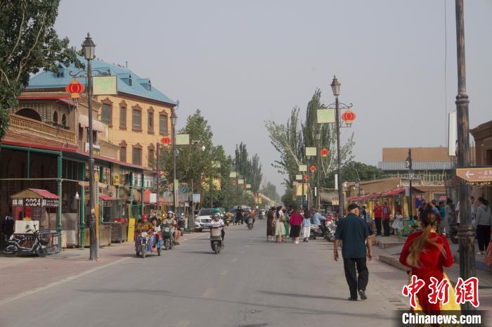 6月28日晚,阿孜汗村無(wú)花果風(fēng)情街一景。中新社記者 蘇碧瀅 攝