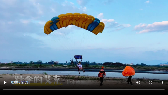 艾克萊姆出生在大美新疆博樂市,是一名職業(yè)跳傘員,也是海南鶯歌海跳傘基地的一名跳傘教練。艾克萊姆喜歡在藍(lán)天白云間自由穿梭的感覺,三年間累計(jì)完成了1000多次的跳傘。艾克萊姆說:“跳傘是一種與天空對話的方式,是人類對自由勇敢的追求。在高空中,風(fēng)在耳邊呼嘯,那種感覺無法用言語來形容。”