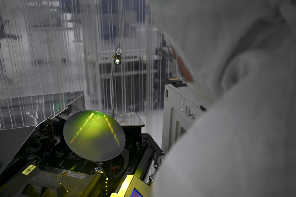 安徽華鑫微納集成電路有限公司的工作人員在檢測(cè)MEMS晶圓。新華社記者 黃博涵 攝