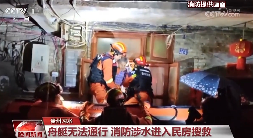8日晚到9日清晨,貴州遵義習(xí)水縣遭遇強(qiáng)降雨襲擊,導(dǎo)致縣城多處低洼地帶積水嚴(yán)重,道路被淹、房屋進(jìn)水,多名群眾被困。當(dāng)?shù)叵啦块T展開(kāi)救援,但因部分地區(qū)通道狹窄,舟艇無(wú)法通行,消防人員將繩索系在身上,涉水進(jìn)入民房展開(kāi)搜救。