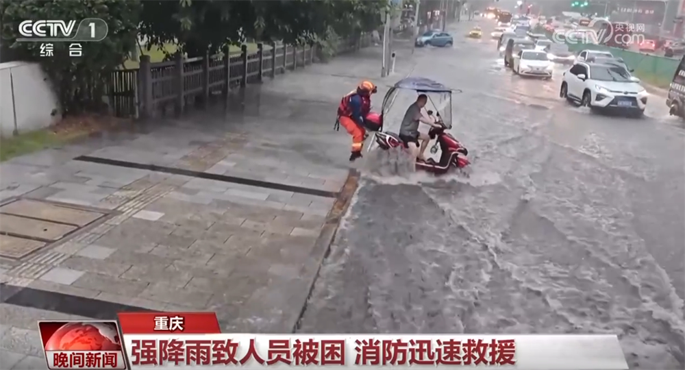 重慶也受到強(qiáng)降雨的影響。在大渡口區(qū)鋼花路紅樓醫(yī)院附近,消防人員發(fā)現(xiàn)一名摩托車騎手被困水中,有被沖走的危險(xiǎn)。經(jīng)過(guò)救援,該男子被轉(zhuǎn)移至安全地帶。據(jù)介紹,目前,大渡口區(qū)消防救援局共處置相關(guān)警情16起,出動(dòng)130余人次參與救援工作。