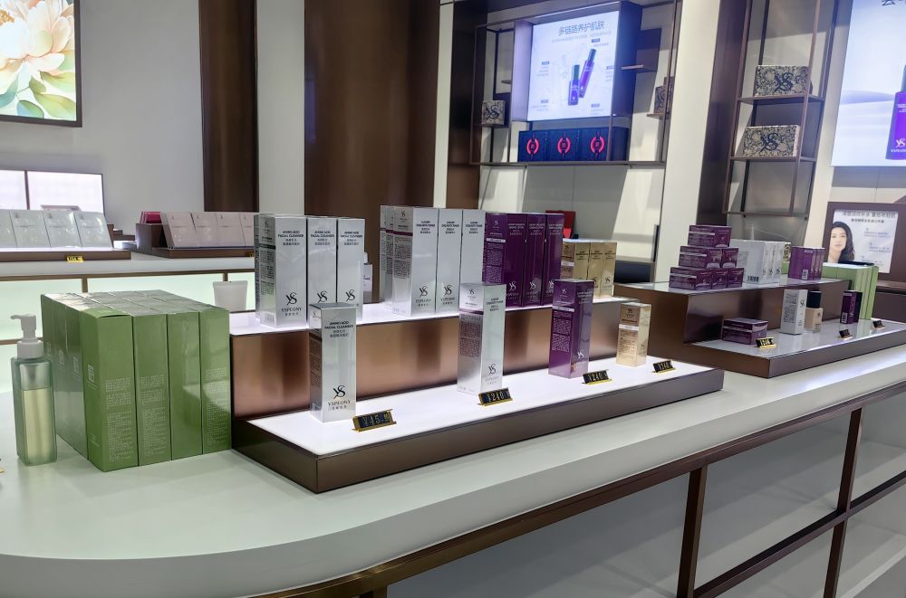 這是在菏澤堯舜牡丹生物科技有限公司展廳內(nèi)展出的產(chǎn)品。新華社記者陳國(guó)峰 攝