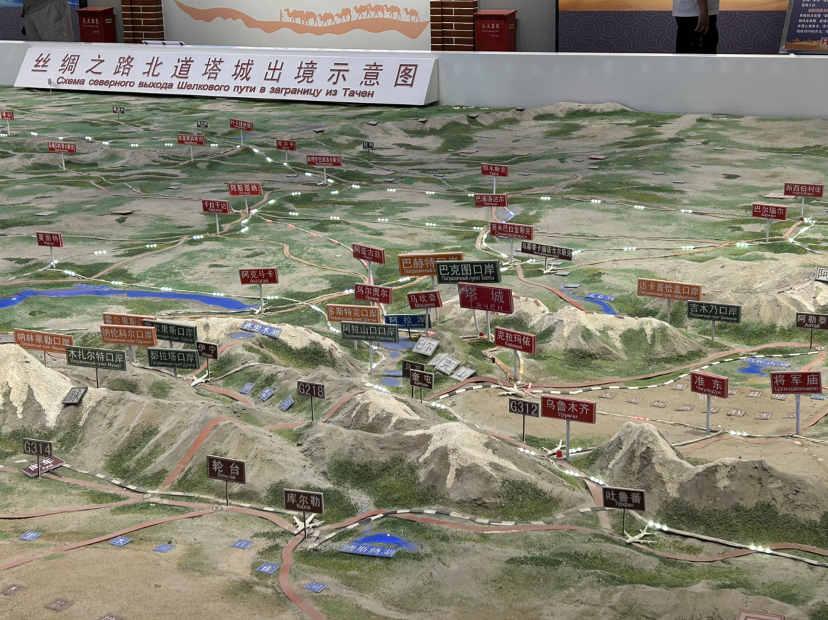 在巴克圖口岸文化展示館,解說(shuō)員趙倩指著一張乾隆年間的易貨貿(mào)易圖介紹:“從1764年民間駝隊(duì)往來(lái),到1854年正式通商,這里始終是亞歐大陸重要的貿(mào)易走廊。”館內(nèi)沙盤(pán)清晰呈現(xiàn)“一核、兩廊、三區(qū)”新布局,2025年上半年數(shù)據(jù)顯示,口岸出入境人員同比增長(zhǎng)167.82%,通關(guān)時(shí)間較往年縮短40%?!艾F(xiàn)在的司機(jī)用手機(jī)APP就能完成申報(bào),邊民互市‘整進(jìn)整出’模式讓貿(mào)易更高效?!壁w倩說(shuō)道。