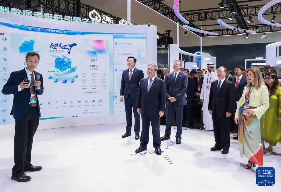 開幕式后,李強同與會外方嘉賓、國際組織代表共同巡館,并與有關科研機構和企業(yè)負責人互動交流。