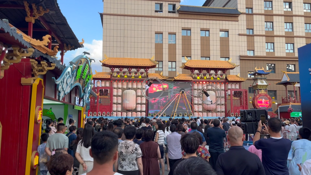 在烏魯木齊市的天山明月城特色街區(qū),這里匯集了餐飲、休閑娛樂、歌舞演藝等業(yè)態(tài),每天都有各類演出活動(dòng),在豐富市民游客文化活動(dòng)的同時(shí),激發(fā)消費(fèi)活力,助力“夜經(jīng)濟(jì)”發(fā)展。