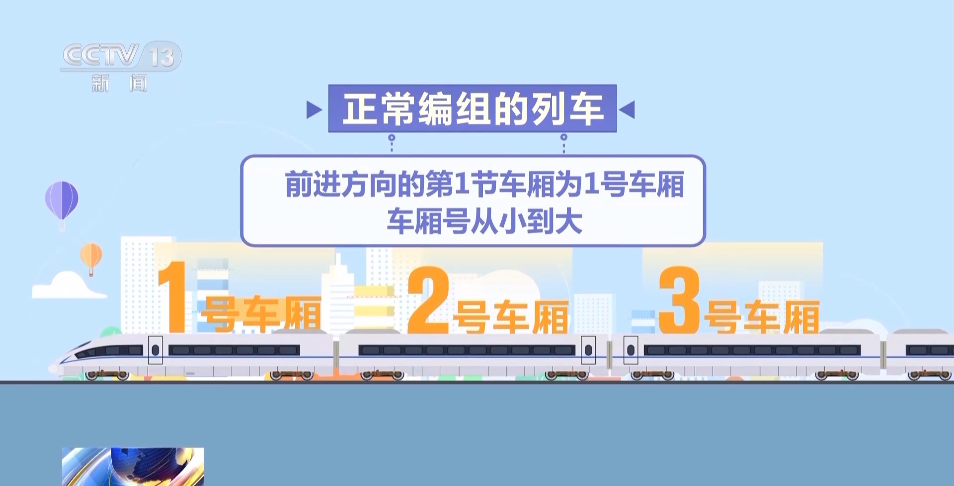 國(guó)鐵太原局大同南站客運(yùn)值班員 張家鶯:現(xiàn)在大多數(shù)車站都在旅客進(jìn)入站臺(tái)處的LED屏上顯示車廂排序信息,旅客通過排序能判斷自己的車廂是應(yīng)該往前走還是往后走。很多高鐵站還設(shè)置有黃、綠、藍(lán)、紫等顏色的地標(biāo),地標(biāo)上標(biāo)注的數(shù)字代表列車??空九_(tái)后車廂所在的位置。
