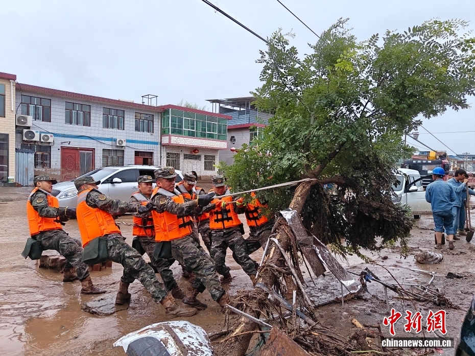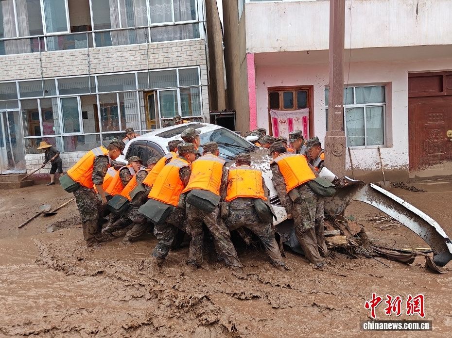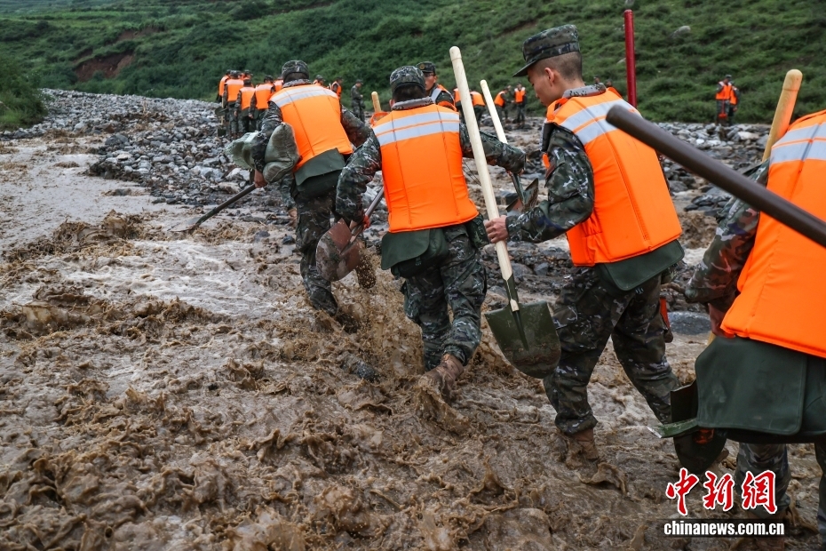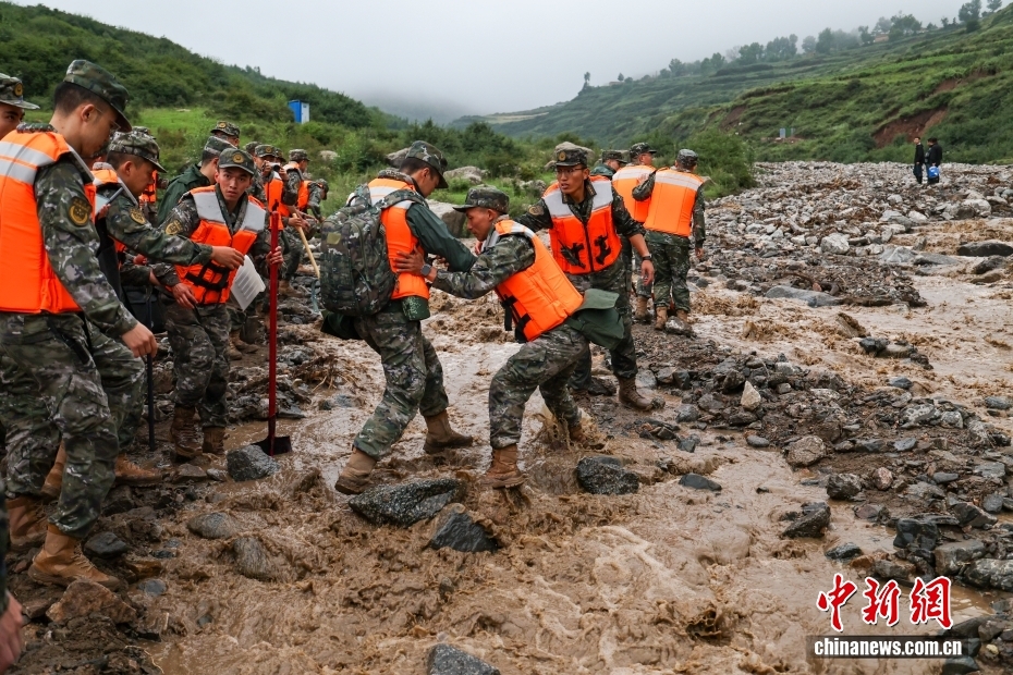 截至8日晚,武警甘肅總隊投入396名兵力開展道路清淤、人員搜救、搬運物資等救援行動,共轉(zhuǎn)移群眾171人、搜救被困群眾5人、救治受傷群眾2人、清理危房6處、轉(zhuǎn)移受損車輛12輛,累計清理淤泥、山石700余方,搜索河道6公里、搶通道路2300米。圖為8月8日,武警甘肅總隊機動支隊官兵挺進災區(qū)甘肅省蘭州市榆中縣馬坡鄉(xiāng)舊莊溝村展開救援。劉昆 攝