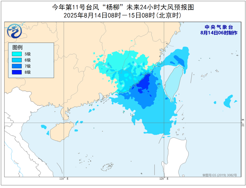 8月14日08時(shí)至15日08時(shí),東海南部、臺(tái)灣海峽、南海東北部、巴士海峽、臺(tái)灣島北部和南部沿海、福建中南部及沿海、廣東東部及沿海、江西南部將有5~7級(jí)風(fēng),其中福建南部沿海、廣東東部沿海、臺(tái)灣海峽南部海域風(fēng)力可達(dá)8級(jí)、陣風(fēng)9~10級(jí)。