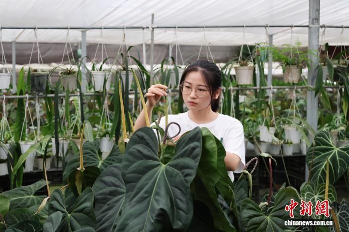 這位曾懷揣1萬元啟動資金的大學(xué)生,在園區(qū)婦聯(lián)創(chuàng)業(yè)扶持下,將天南星科植物育種做成千萬產(chǎn)業(yè)?!鞍滋煜绿锱嘤淦?,夜晚直播分享知識”,她的村播新業(yè)態(tài)帶動20多位農(nóng)村婦女就業(yè),讓科技賦能的雨林植物遠(yuǎn)銷海外。