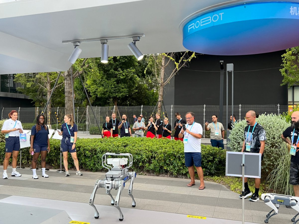 戴上AR翻譯眼鏡,葡萄牙運(yùn)動(dòng)員和德國(guó)選手開(kāi)啟無(wú)障礙暢聊;美國(guó)選手一句“GoGo,帶我去熊貓商店”,智能機(jī)器狗聞聲而動(dòng);土耳其選手和智能運(yùn)動(dòng)搭子練起了球;澳大利亞姑娘欣賞著美甲機(jī)器人噴繪的熊貓圖案……