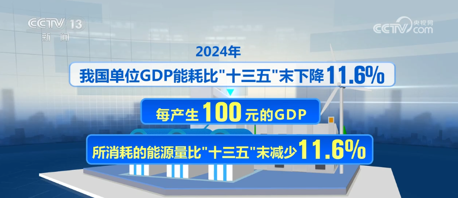 2024年,我國(guó)單位GDP能耗比“十三五”末下降11.6%。也就是說(shuō)每產(chǎn)生100元的GDP,所消耗的能源量比“十三五”末減少了11.6%,能耗下降的同時(shí),另一個(gè)指標(biāo)的水平卻提高了——主要資源產(chǎn)出率卻提高了12%。