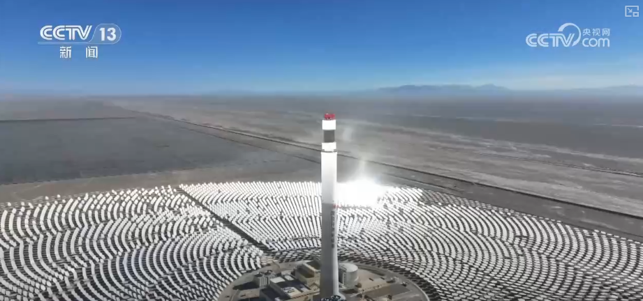 萬(wàn)米高空感知著這片地區(qū)的改變。在庫(kù)布齊沙漠,2022年這里還是一片荒蕪之地,如今,長(zhǎng)出了一片片“藍(lán)色海洋”;在甘肅,三萬(wàn)面鏡子點(diǎn)亮了這片荒漠,它們可以幫助存儲(chǔ)起熱量,讓光伏也能實(shí)現(xiàn)全天發(fā)電。在西藏,海拔5000多米的雪域高原上,幾十個(gè)“大風(fēng)車(chē)”正迎風(fēng)而立。