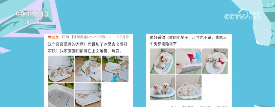 高溫還催熱了“它經(jīng)濟(jì)”。在網(wǎng)購(gòu)平臺(tái)上搜索關(guān)鍵詞“寵物降溫”,寵物空調(diào)房、冰墊、冰絲圍巾、寵物專用空調(diào)等商品琳瑯滿目。一件30塊錢(qián)左右的基礎(chǔ)款寵物冰墊,月銷量輕松破萬(wàn)。可調(diào)節(jié)風(fēng)速的寵物風(fēng)扇、能自動(dòng)制冷的寵物窩等,同樣備受追捧。評(píng)論區(qū)的畫(huà)風(fēng)是這樣的“狗狗非常喜歡,玩得不亦樂(lè)乎”“貓咪睡覺(jué)終于踏實(shí)了”“家里的娃和毛孩子都很喜歡”。