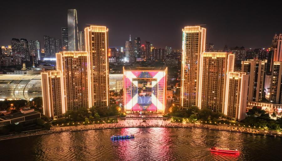 這是2025年8月1日拍攝的天津海河夜景(無(wú)人機(jī)照片)。新華社記者 孫凡越 攝