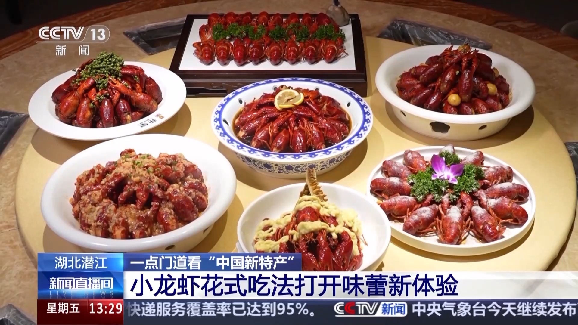 今天在演播室,我們也為大家?guī)砹藘傻罎摻↓埼r的新品,這道是“榴梿蝦”,大家可以看到,這是將軟爛的榴梿肉與龍蝦一起燒制,看著就非常入味,直播間里現(xiàn)在都飄著榴梿濃郁的味道。旁邊還有一款神秘口味的小龍蝦,看著平平無奇,但是據(jù)說非常獨特,可能會顛覆您對小龍蝦口味的印象,和咱們平時喝的某種飲品有關(guān),那究竟是什么味道呢?咱們先賣個關(guān)子,讓我們跟隨總臺記者的鏡頭,一起走進潛江,看看那里的龍蝦盛宴。