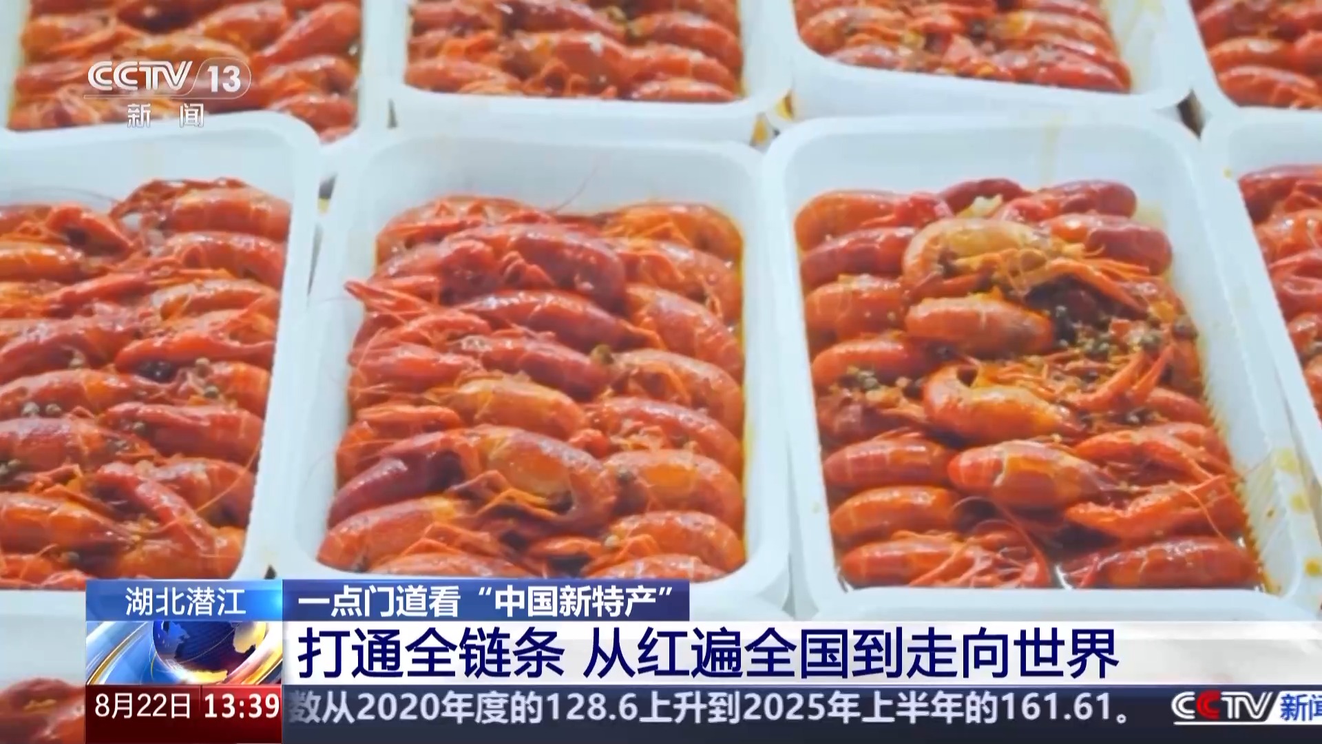 潛江市小龍蝦產(chǎn)業(yè)發(fā)展促進中心主任 章云:截至目前,潛江小龍蝦的規(guī)模以上加工企業(yè)共有19家,生產(chǎn)出了60多種產(chǎn)品,組成了小龍蝦產(chǎn)品矩陣,建立了涵蓋餐飲、食品、醫(yī)療等多領(lǐng)域的全產(chǎn)業(yè)鏈體系??梢哉f,從田間到餐桌,從國內(nèi)到國際,潛江將這小小的一只蝦“吃干榨凈”,綜合(年)產(chǎn)值已經(jīng)突破了870億。
