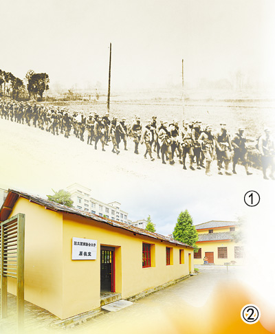 圖①:長沙臨時大學(xué)部分師生步行前往昆明。