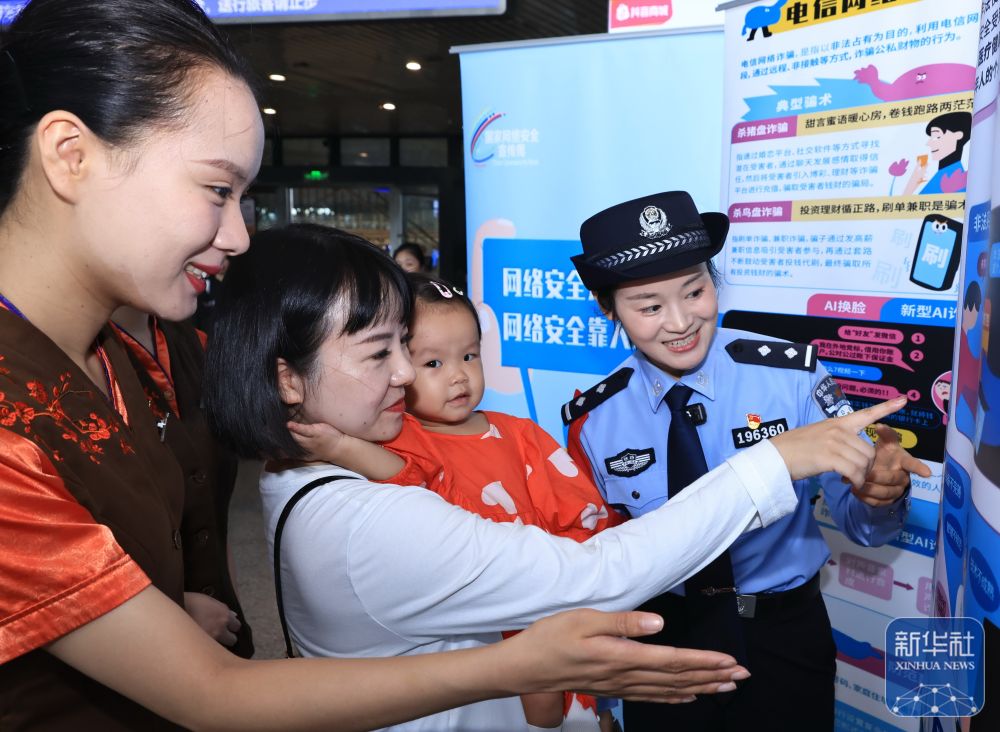 9月15日,湖北武漢鐵路公安處武漢站派出所民警在武漢站為旅客講解網(wǎng)絡(luò)安全知識(shí)。新華社發(fā)(趙軍攝)