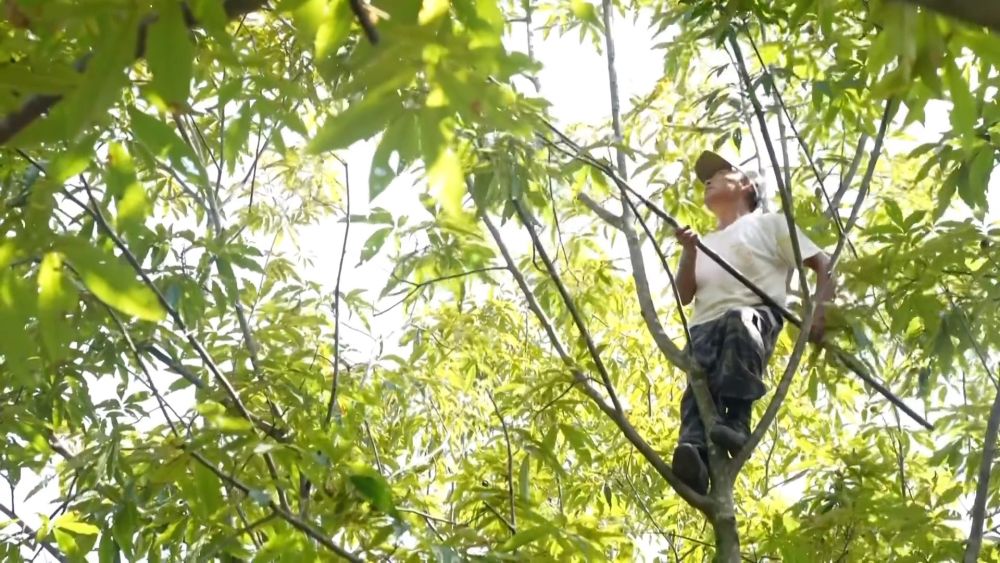 浙江省杭州市臨安區(qū)迎來了一年一度的山核桃采收季。在昌化鎮(zhèn)后營(yíng)村,林農(nóng)們正忙著采收。