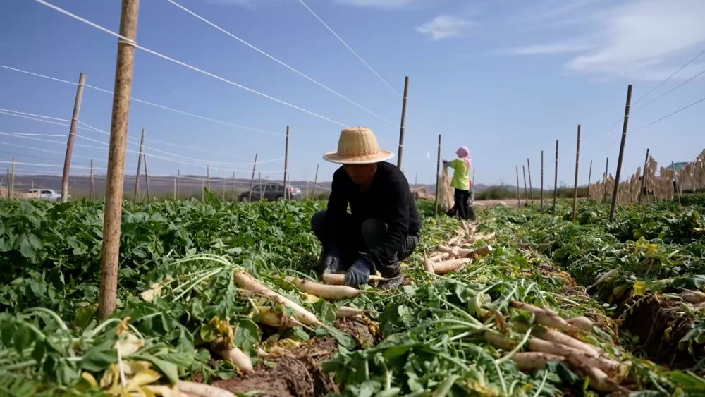 在寧夏吳忠市紅寺堡區(qū)大河鄉(xiāng)平嶺子村,1500畝長(zhǎng)美蘿卜迎來豐收季。