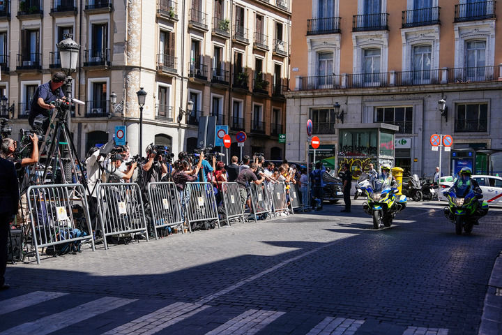 兩天里,圣克魯斯宮外,近百名媒體記者從早到晚盯守著會場的一舉一動,吸引當?shù)鼐用?、各國游客駐足觀望。