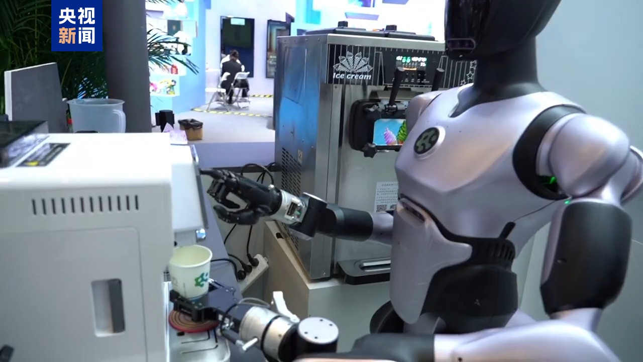 逛累了,還可以來一杯由機器人制作的咖啡,聽一首由機器人賽博鼓手奏樂的廣西民歌《大地飛歌》。