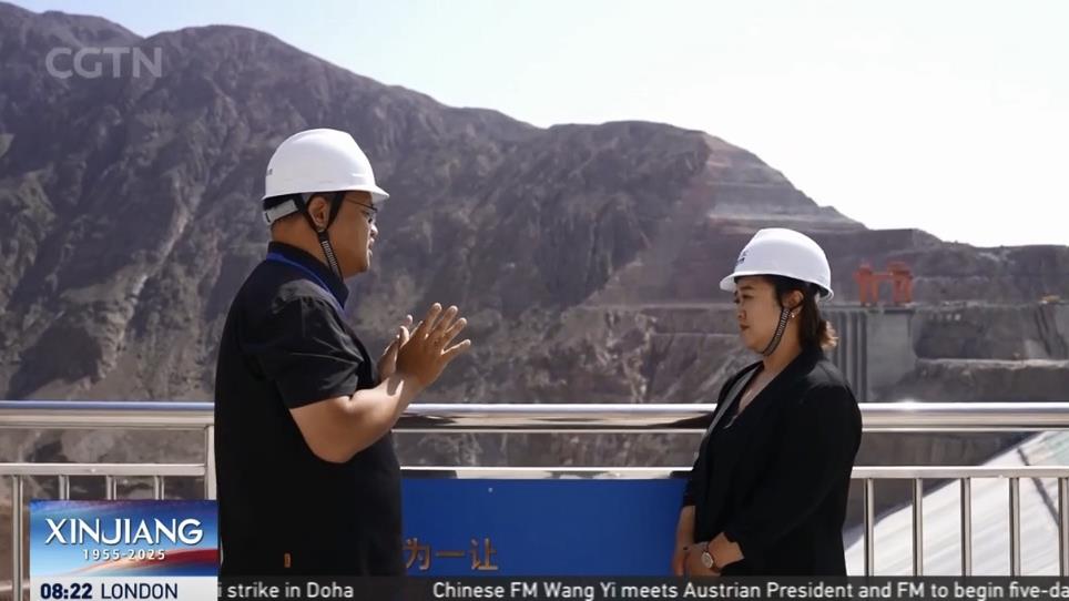 正在建設中的新疆大石峽水利樞紐工程大壩是世界最高混凝土面板砂礫石壩。建成后的水庫總庫容約12億立方米,相當于80個西湖的水量。電站投運后將成為南疆電網的“電壓穩(wěn)定器”。同時,工程每年會向塔里木河供應逾34億立方米的生態(tài)用水,使這片土地從資源匱乏的荒原變?yōu)槿f物生長的綠洲。記者采訪葛洲壩集團工程負責人黃晉,展示智能管理云平臺對施工環(huán)節(jié)的精確把控,彰顯中國水利設施建設的卓越成就。