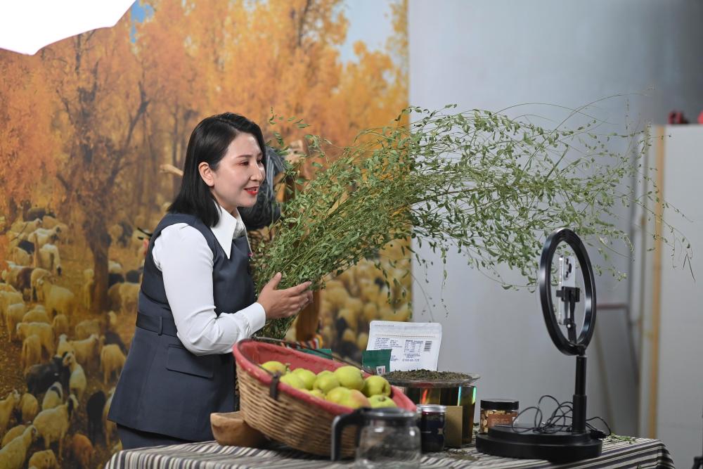 9月19日,尉犁縣電商協(xié)會負(fù)責(zé)人米日阿依·阿西木在達(dá)西村的電商基地直播推介達(dá)西村農(nóng)產(chǎn)品。近年來,達(dá)西村構(gòu)建“農(nóng)戶生產(chǎn)+企業(yè)加工包裝+電商銷售+物流配送”全產(chǎn)業(yè)鏈,為縣域經(jīng)濟(jì)發(fā)展培養(yǎng)孵化本土直播電商人才,促進(jìn)傳統(tǒng)產(chǎn)業(yè)轉(zhuǎn)型升級。