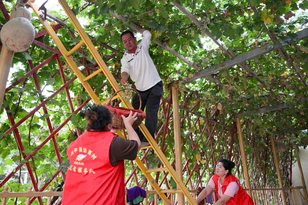 9月18日,達(dá)西村村干部入戶幫助村民采摘葡萄。近年來,達(dá)西村充分挖掘房前屋后閑置土地及荒廢地塊,逐步擴(kuò)大特色林果種植面積,引導(dǎo)村民增收。