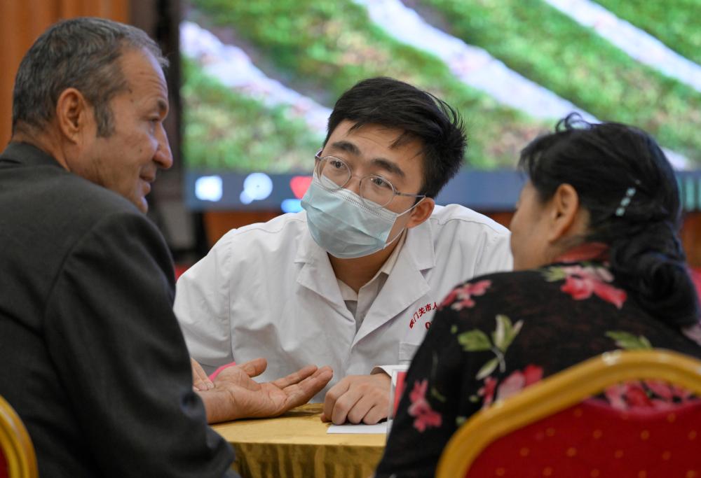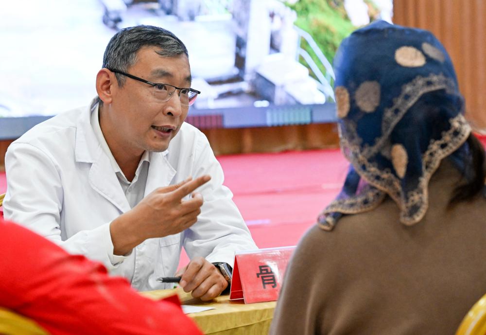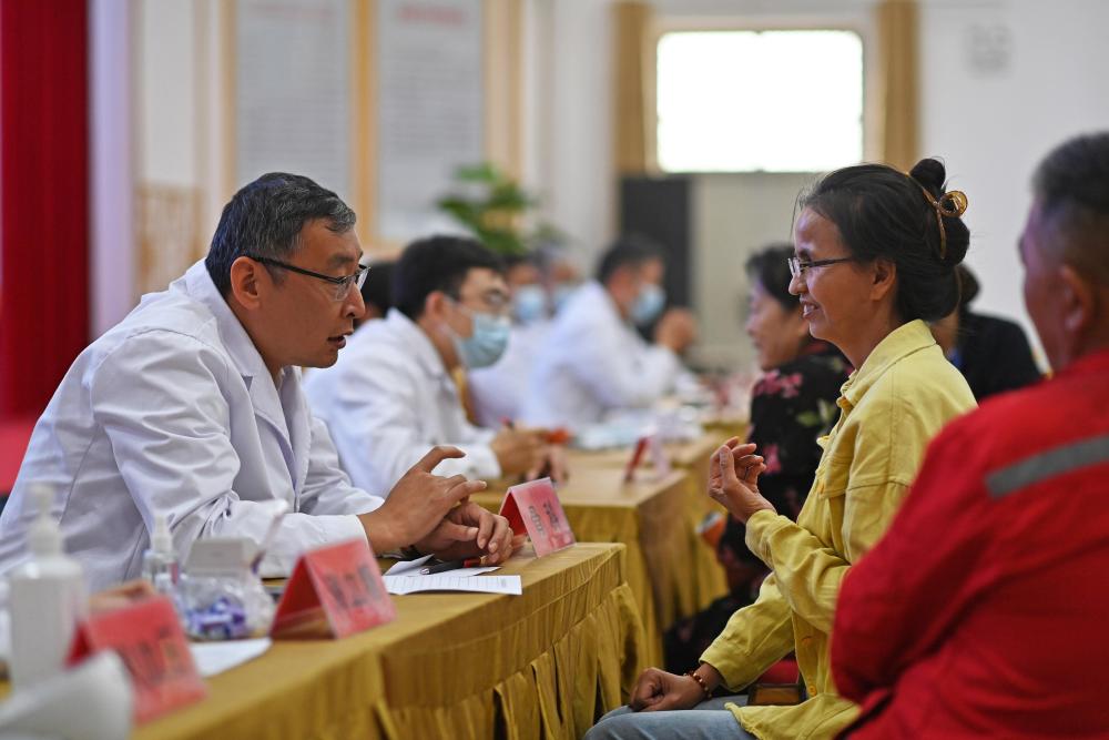 9月19日,鐵門關(guān)市人民醫(yī)院醫(yī)生在達(dá)西村為村民義診。