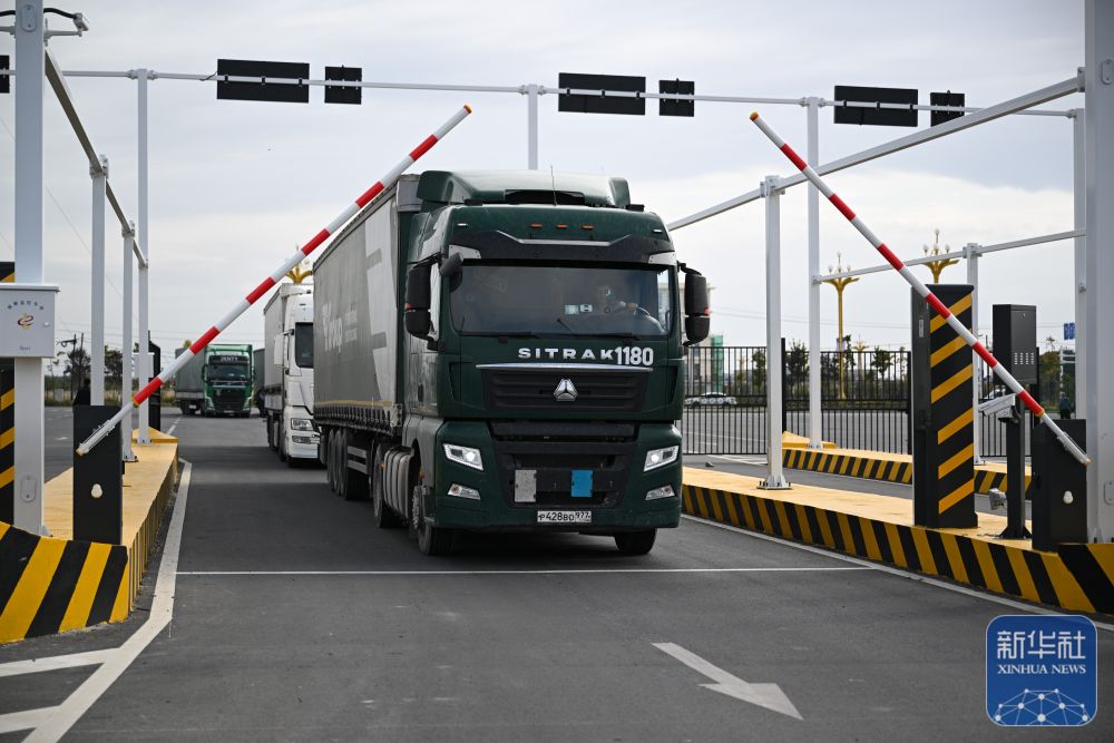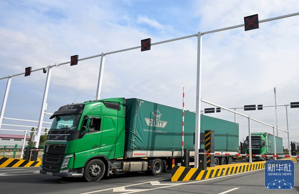 ↑9月17日,來自俄羅斯的貨車從位于新疆塔城地區(qū)的巴克圖口岸海關集中查驗場地出關。