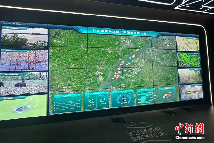 南京長(zhǎng)江新濟(jì)洲國(guó)家濕地公園內(nèi)的智慧大屏。高萌 攝