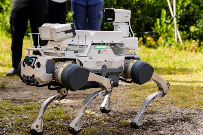 從“地面?zhèn)刹毂睓C(jī)械狗,到“無(wú)形劍客”激光清障儀,各種新技術(shù)齊登場(chǎng)。一方面,機(jī)械狗以其靈活性而著稱,可爬坡、越障,代替?zhèn)鹘y(tǒng)巡檢人員實(shí)現(xiàn)園區(qū)全角落全覆蓋,并將錄制的高清視頻實(shí)時(shí)傳回后臺(tái),為工作人員提供技術(shù)分析數(shù)據(jù)支撐;另一方面,激光清障儀可利用其高度集中的光能,隔空切斷樹枝,確保在不停電、不爬高的前提下,安全清理威脅園區(qū)電網(wǎng)安全的樹障。