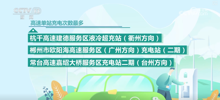 高速單站充電次數(shù)最多的是杭千高速建德服務(wù)區(qū)液冷超充站(衢州方向)、郴州市歐陽(yáng)海高速服務(wù)區(qū)(廣州方向)充電站(二期)、常臺(tái)高速嘉紹大橋服務(wù)區(qū)充電站二期(臺(tái)州方向)。