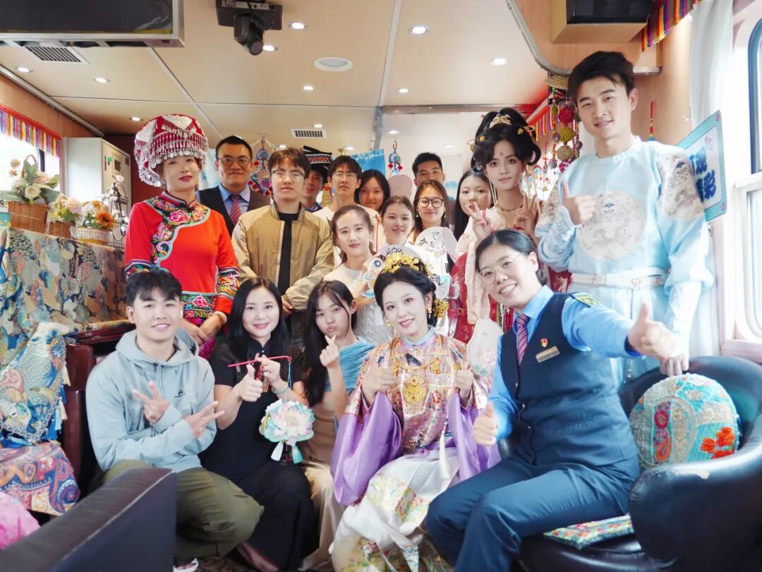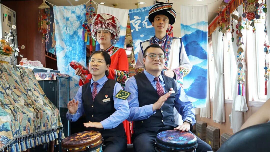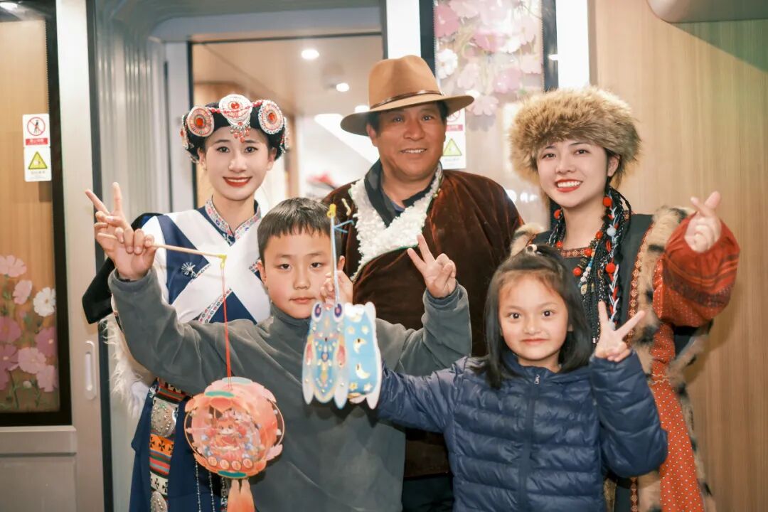 “旅客朋友們,歡迎乘坐本趟列車,中秋佳節(jié)將至,我們在2號餐車準備了特色活動,誠邀大家共慶佳節(jié)!”列車長李文雯的聲音通過廣播傳遍車廂。隨即《納西三部曲》旋律響起——身著絢麗民族服飾的列車員們,拉著周圍旅客一同跳起納西族舞蹈,歡快的節(jié)奏瞬間點燃車廂氣氛。
