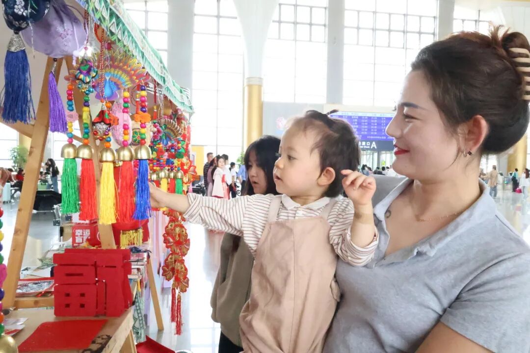 候車大廳內,紅色的國旗與中秋元素裝飾隨處可見。志愿者向旅客熱情遞上文旅宣傳冊,介紹紅河州特色景點與動車出行攻略。精彩的民族歌舞表演吸引了旅客紛紛駐足,他們舉起手機記錄下精彩瞬間。