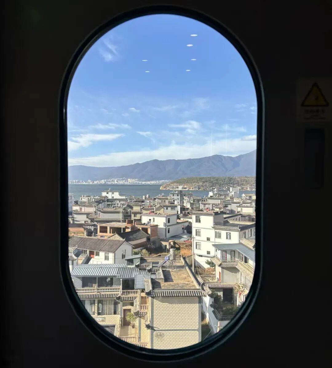 列車載著風穿行,車窗恰似畫框,將大理的詩意牢牢框住。澄澈藍天如被水洗過的藍綢,洱海似一汪碎了的藍寶石,在日光下漾著粼粼波光,遠處青山如黛,靜默相依。近處,白墻黛瓦的村落像從時光深處走來的精靈,挨挨擠擠。屋頂的線條或平直或微翹,似在無聲訴說著歲月故事。隔著車窗,也能感受到“詩和遠方”,真叫人沉醉在這旅途中的“大理藍”里。(作者:李婭姣)