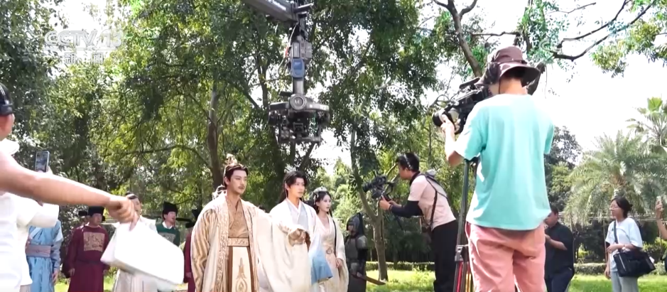這幾天,位于浙江金華的橫店影視城最高氣溫超過35℃。各大片場里,短劇拍攝更是一片火熱。記者在橫店影視城華夏文化園景區(qū)內(nèi)看見,有兩部短劇正同時拍攝,劇組各占一塊地方,相隔幾百米左右,燈光、搖臂......各種設備應有盡有,工作人員默契配合,拍攝井然有序。