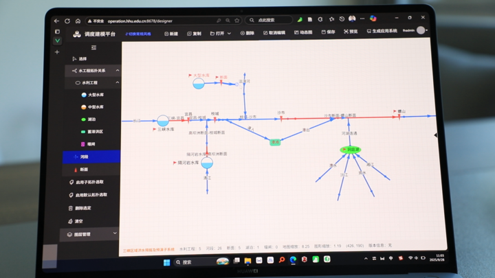 在河海大學水工程調(diào)度團隊鐘平安教授的帶領(lǐng)下,朱非林參與了面向三峽工程這一國之重器的重大科研攻關(guān)。團隊主要在"快"和"準"兩個字上下功夫。過去,為一個流域搭建防汛調(diào)度模型和系統(tǒng),需要工程師花費幾天甚至幾個月手動創(chuàng)建,如同手工編織一張巨大的網(wǎng)。朱非林團隊開發(fā)了一套智能在線建模系統(tǒng),像搭"數(shù)字樂高"一樣,通過簡單的鼠標拖拉拽操作,就能在幾分鐘內(nèi)建立起全國任意流域或區(qū)域的調(diào)度系統(tǒng)和模型,極大提升了防汛決策的響應速度,為洪水調(diào)度贏得了寶貴的黃金時間。