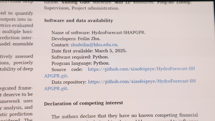 朱非林在學術(shù)研究中有一個特別的堅持——公開分享自己的代碼。早在2017年,他就將防洪決策的模型代碼公開,美國、印度及國內(nèi)的學者紛紛與他聯(lián)系,在他開發(fā)的模型基礎(chǔ)上進行深化研究,推動了整個方向的發(fā)展。"水利行業(yè)是造福人民的事業(yè),不應該有圍墻。"朱非林的想法很簡單,一項技術(shù)只有被更多人使用、檢驗和完善,才能發(fā)揮更大價值,更快推動整個行業(yè)進步。個人的工作如果能給其他研究者或工程單位帶來啟發(fā)和幫助,其意義就遠超一篇論文本身。