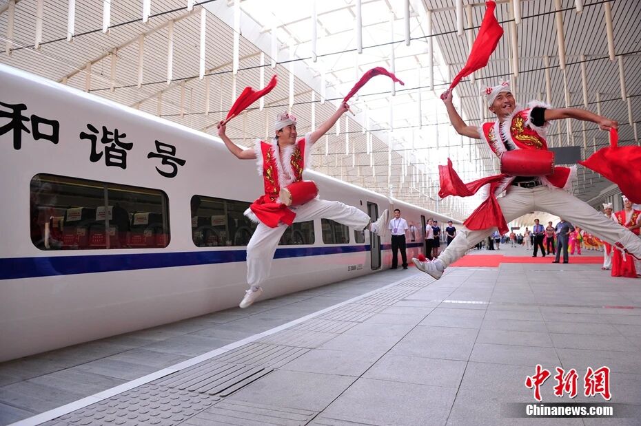 圖為2012年7月1日西安至延安動車組列車首發(fā)。唐振江 攝