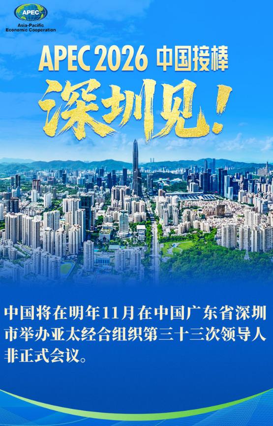 中國將在明年11月在中國廣東省深圳市舉辦亞太經(jīng)合組織第三十三次領(lǐng)導(dǎo)人非正式會(huì)議。