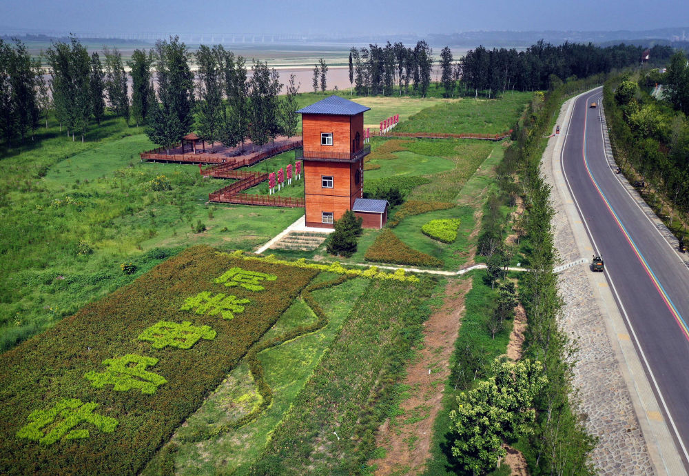 這是2022年8月10日拍攝的位于河南省三門峽市的黃河生態(tài)廊道(無(wú)人機(jī)照片)。