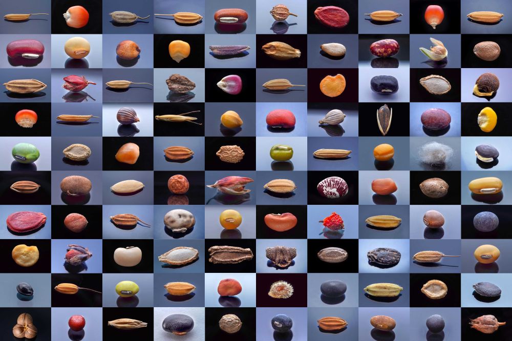 微距鏡頭下,湖南省農(nóng)作物種質(zhì)資源庫(kù)的種子千姿百態(tài)(100個(gè)種子拼版照片)。