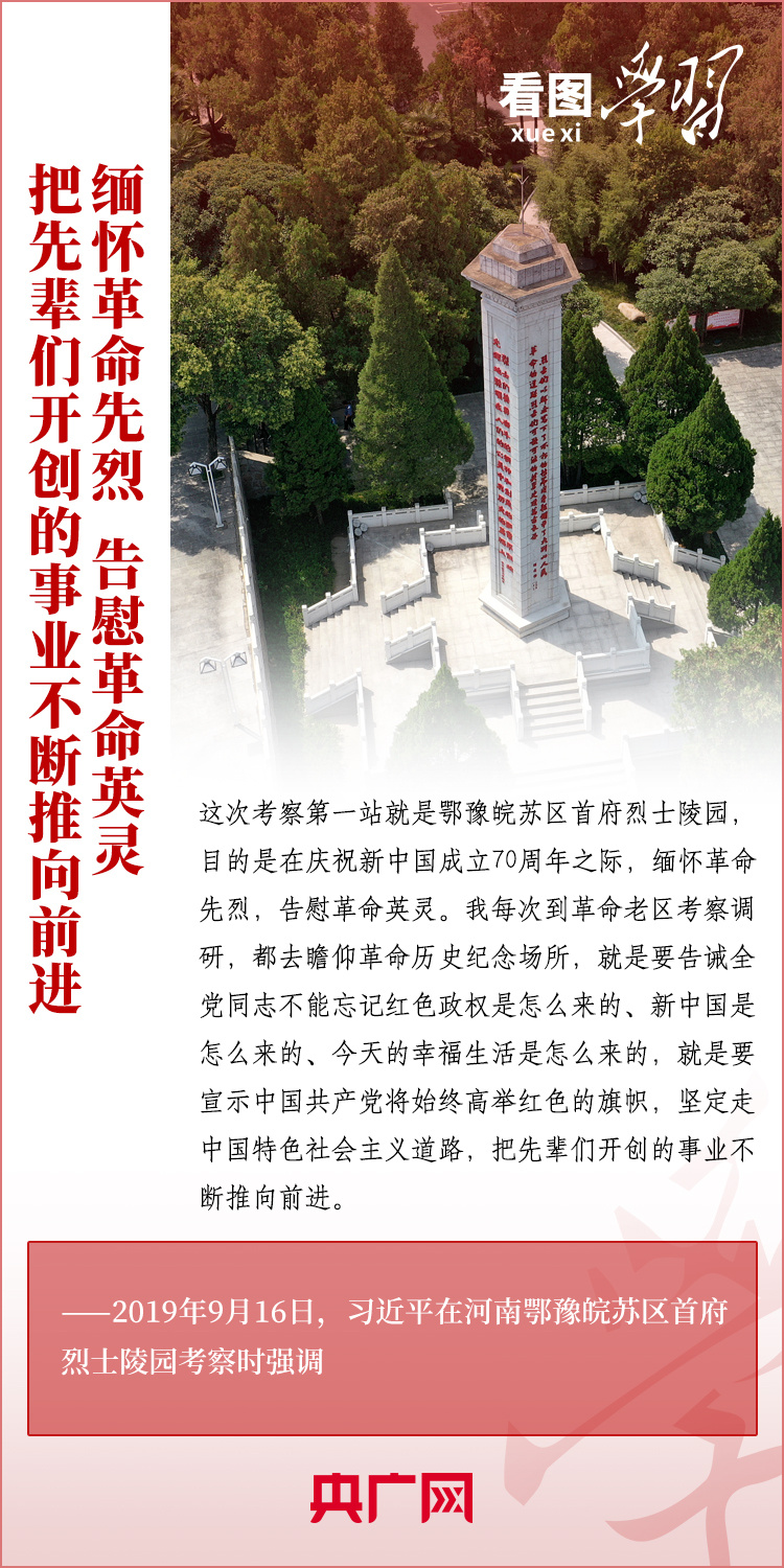 緬懷革命前輩,告慰先烈英靈。黨的十八大以來,習近平總書記多次在重大活動、赴地方調研時,或深情追憶革命前輩、英雄烈士,或向革命紀念場館禮敬鮮花、關心看望英烈親屬??倳浢銊畲蠹乙^承革命先烈遺志,把他們流血犧牲打下的紅色江山守護好、建設好,以實現中華民族偉大復興來告慰革命前輩和先烈。