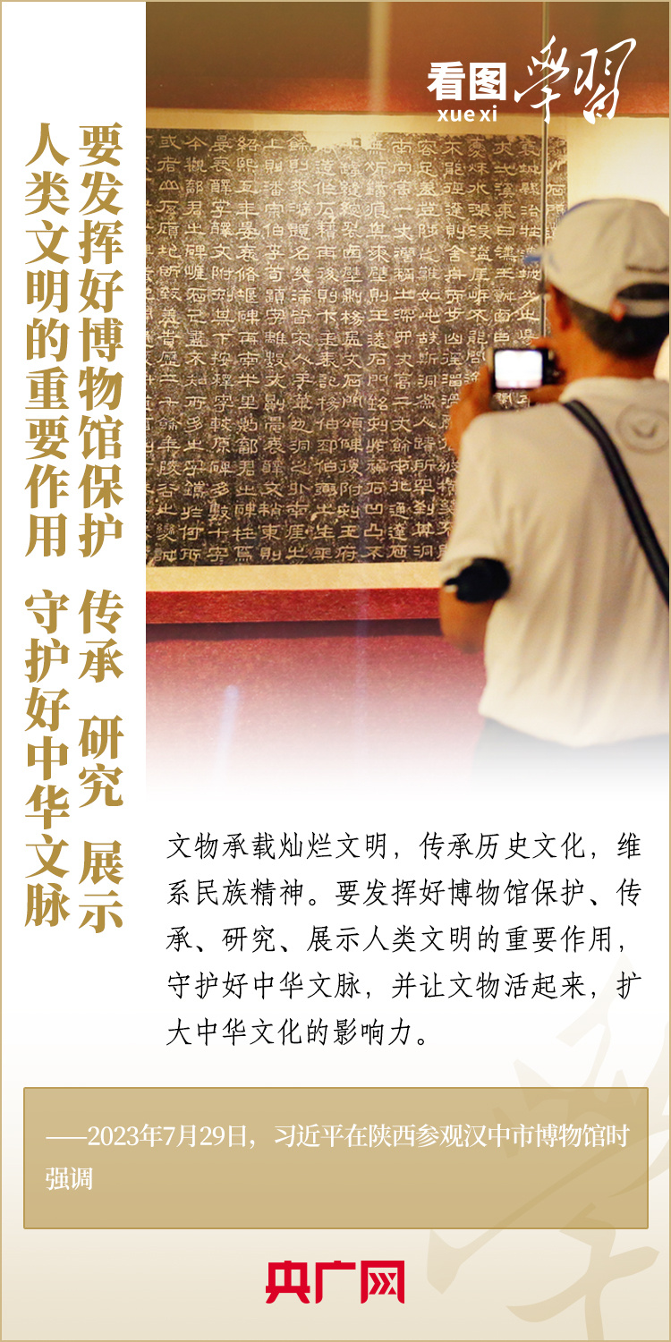 “一座博物館就是一所大學?!薄安┪镳^很重要,我從小就愛看博物館,小時候北京的博物館我差不多都看過了”“博物館建設要更完善、更成體系,同時發(fā)揮好博物館的教育功能”……在國內(nèi)考察中,習近平總書記曾經(jīng)多次走進當?shù)夭┪镳^,了解館藏文物的收藏、保護、研究情況,對博物館建設和利用作出重要指示。一起來學習!