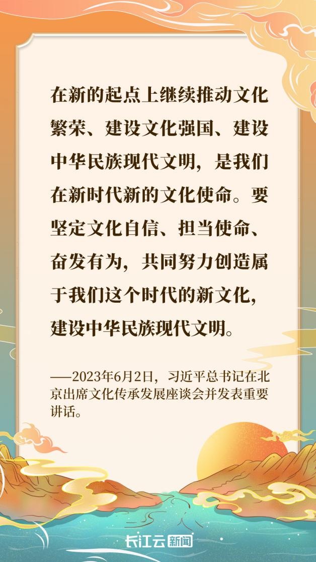 2023年6月2日,文化傳承發(fā)展座談會在北京召開,習近平總書記發(fā)表重要講話,從黨和國家事業(yè)發(fā)展全局戰(zhàn)略高度,對中華文化傳承發(fā)展的一系列重大理論和現(xiàn)實問題作了全面系統(tǒng)深入闡述,為在全面建設社會主義現(xiàn)代化國家新征程上推進文化傳承發(fā)展事業(yè)指明了前進方向、提供了根本遵循。